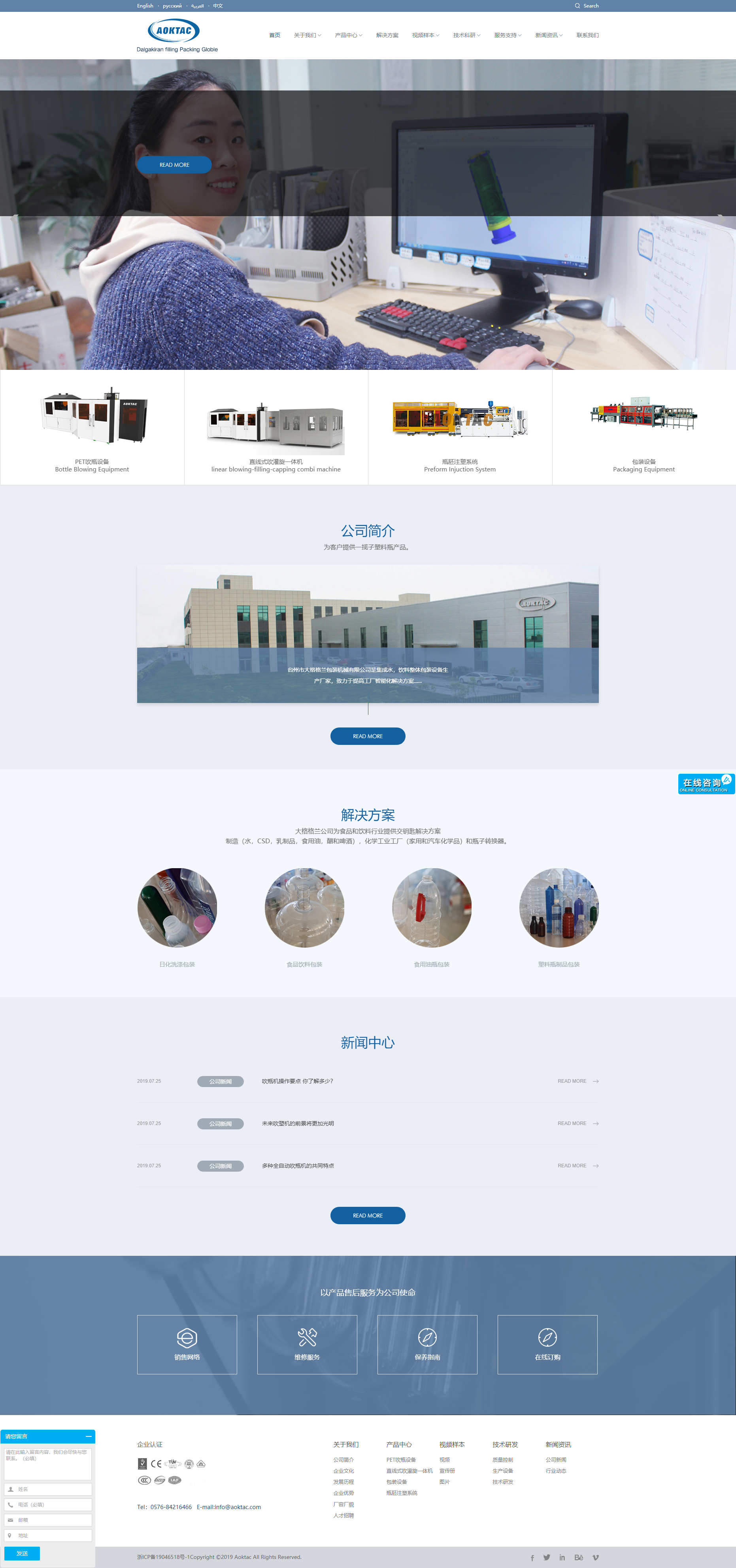 ? ? ? ? 臺(tái)州市大格格蘭包裝機(jī)械有限公司是由精能機(jī)械在臨海投資興辦的制造型實(shí)體企業(yè),是專(zhuān)業(yè)生產(chǎn)PET直線和旋轉(zhuǎn)高速全自動(dòng)吹瓶機(jī)的制造商,創(chuàng)建于2004年。公司目前擁有員工一百人,其中技術(shù)研發(fā)三十多人,擁有多年的生產(chǎn)實(shí)踐經(jīng)驗(yàn),并吸收國(guó)內(nèi)外先進(jìn)技術(shù),經(jīng)過(guò)多年的研發(fā)和改進(jìn),其產(chǎn)品不斷的推陳出新,研發(fā)出多款高速型節(jié)能吹瓶機(jī),在行業(yè)內(nèi)享有很高的聲譽(yù)。
